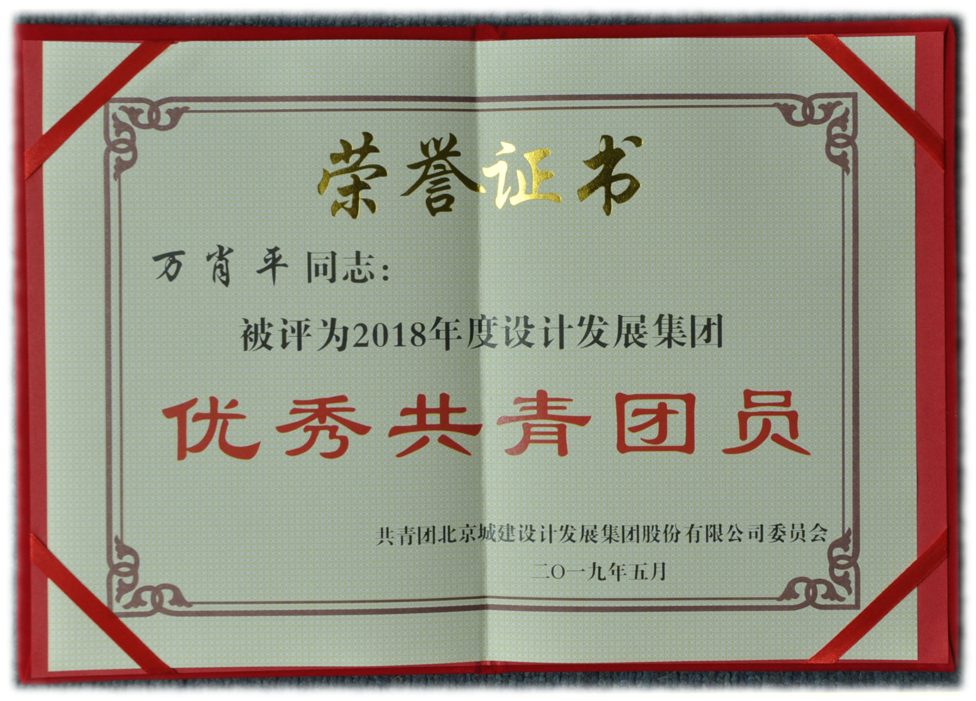公司萬(wàn)肖平同志獲2019年度城建設(shè)計(jì)集團(tuán)優(yōu)秀團(tuán)員稱(chēng)號(hào)