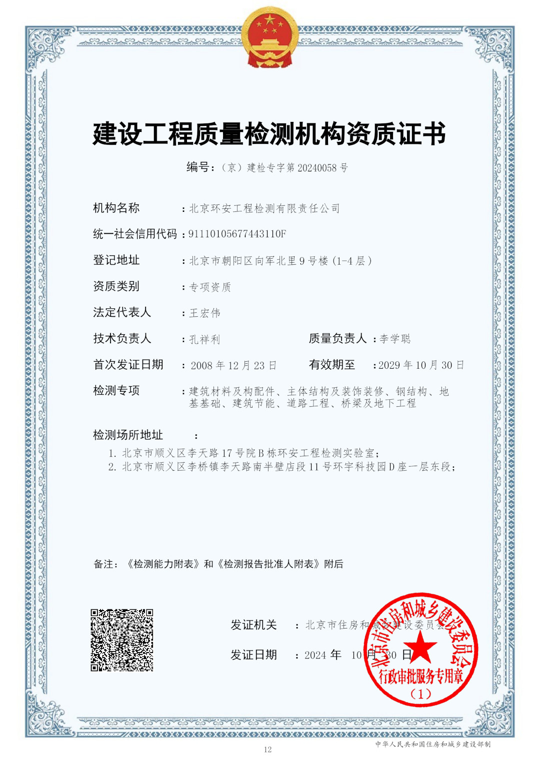 建設(shè)工程質(zhì)量檢測(cè)機(jī)構(gòu)資質(zhì)證書